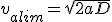 Maintenant on calcule la vitesse maximale valim obtenu pour la distance D. On utilise (2.2) et (2.6) sur le membre de gauche de (2.12) :
